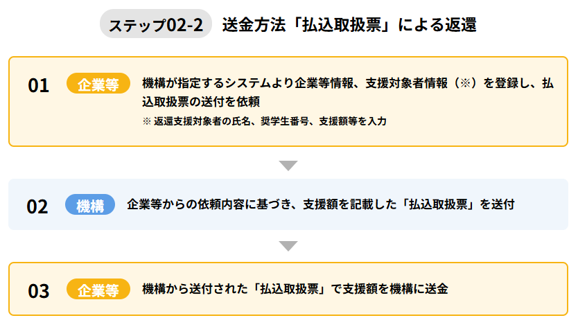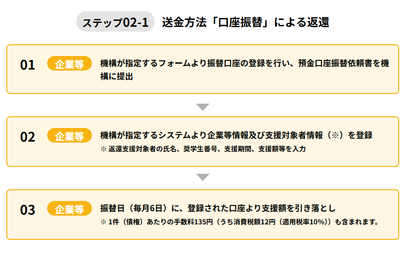 従業員に代わって、奨学金の返済を、会社が直接行います。
