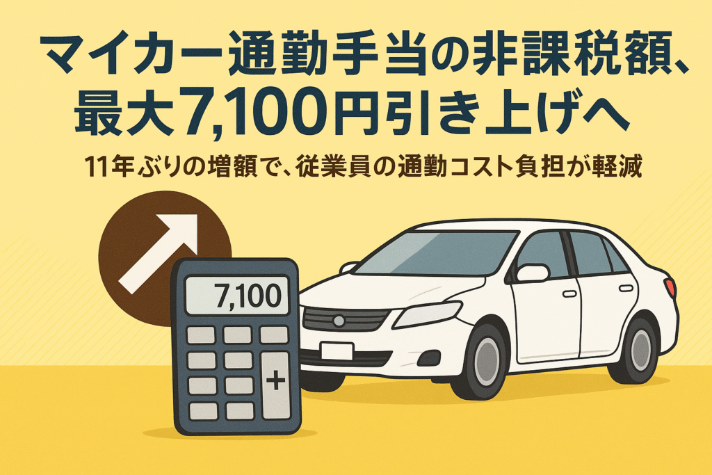 国税庁より、マイカー通勤手当の非課税限度額を引き上げる旨が正式に発表されました。 実に 11年ぶりの増額 となり、多くの企業の給与計算や就業規則に影響が出ます。